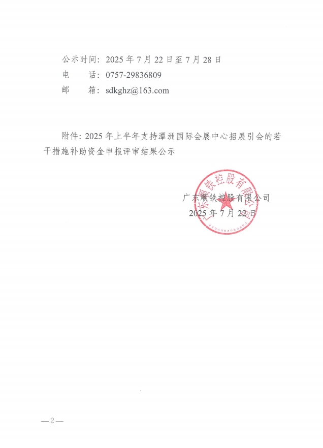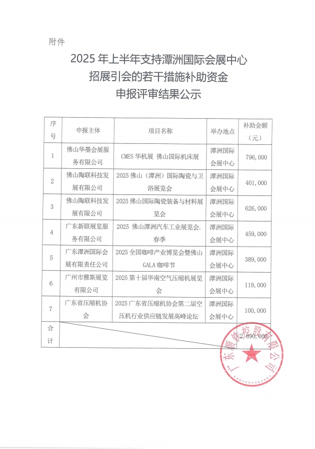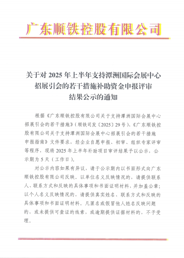 關(guān)于對(duì)2025年上半年支持潭洲國(guó)際會(huì)展中心招展引會(huì)的若干措施補(bǔ)助資金申報(bào)評(píng)審結(jié)果公示的通知